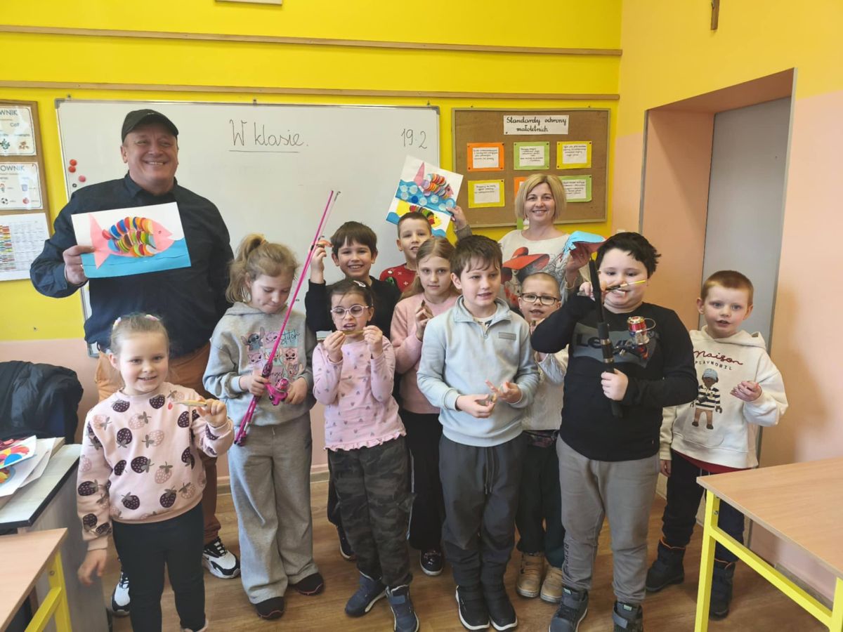 Dzieci z klas 1-3 miały okazję obejrzeć sprzęt wędkarski i dowiedzieć się na czym polega wędkowanie. Poznaliśmy też wiele ciekawostek o różnych gatunkach ryb